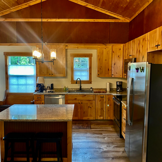 One of the standout features of the remodel is the use of tongue and groove wood ceilings both inside and on the exterior soffits. This choice added texture and warmth, creating a cozy atmosphere that complements the cabin’s rustic setting.